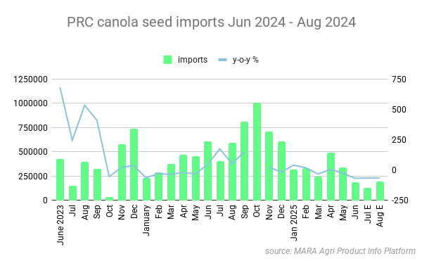 Canada remains >90 percent of PRC seed imports; volumes have dropped sharply year-to-date.